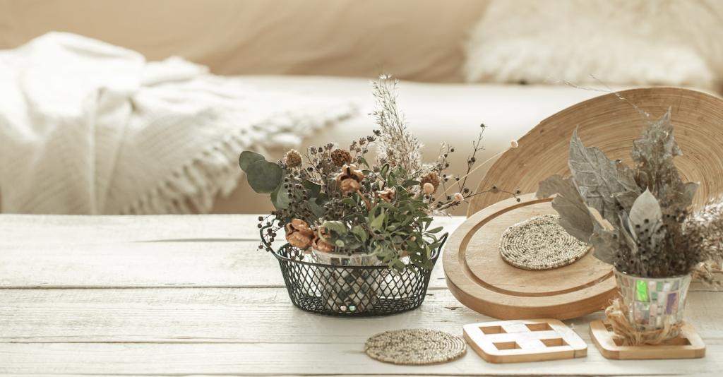 Vasen, Schalen oder Kerzenhalter aus recyceltem Glas und Metall sparen Ressourcen und erzählen sichtbar eine Geschichte. Kleine Unregelmäßigkeiten machen jedes Stück einzigartig. Poste ein Foto deiner liebsten Fundstücke und inspiriere andere, ebenfalls auf wiederverwertete Materialien zu setzen.